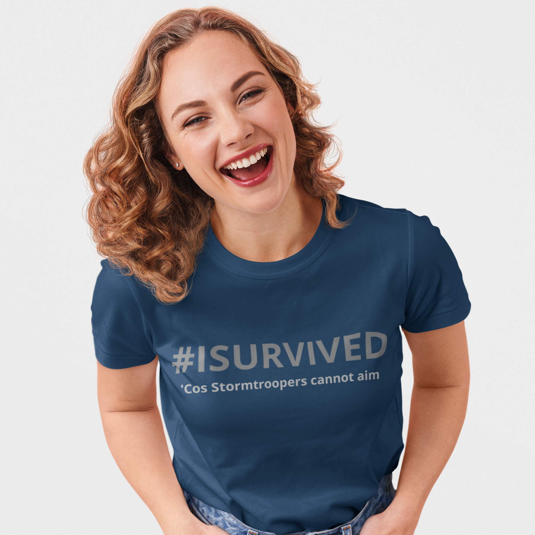 For the Sci-Fi fans, have a laugh and tell people what you survived with your noticeable t-shirt with '#ISURVIVED 'Cos Stormtroopers cannot aim'.
