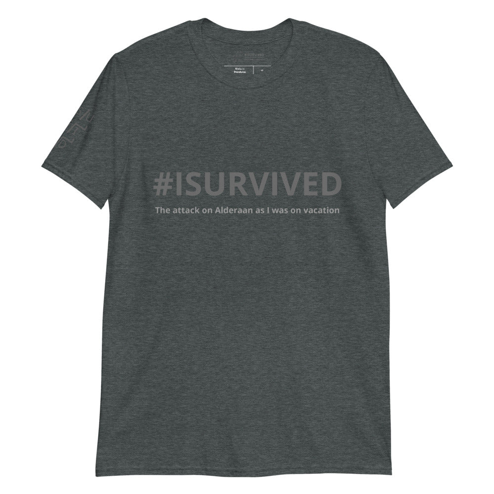 For the Sci-Fi fans, have a laugh and tell people what you survived with your noticeable t-shirt with '#ISURVIVED The attack on Alderaan as I was on vacation'.