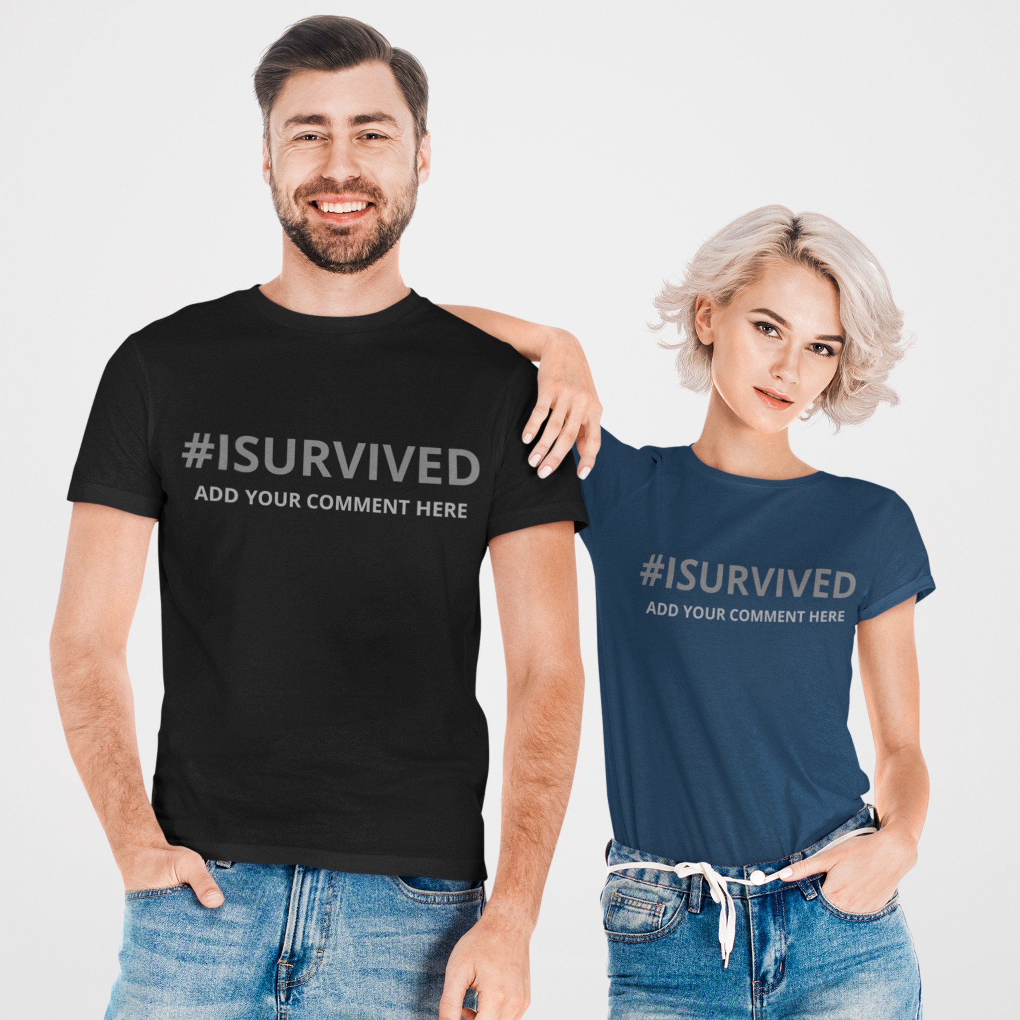Personalize our unique slogan with your own comment, tell people what you have survived being life changing or a personal accomplishment, if you fancy something different you can instead to add something to get a laugh like your partners cooking, stag do or anything which gets a laugh.